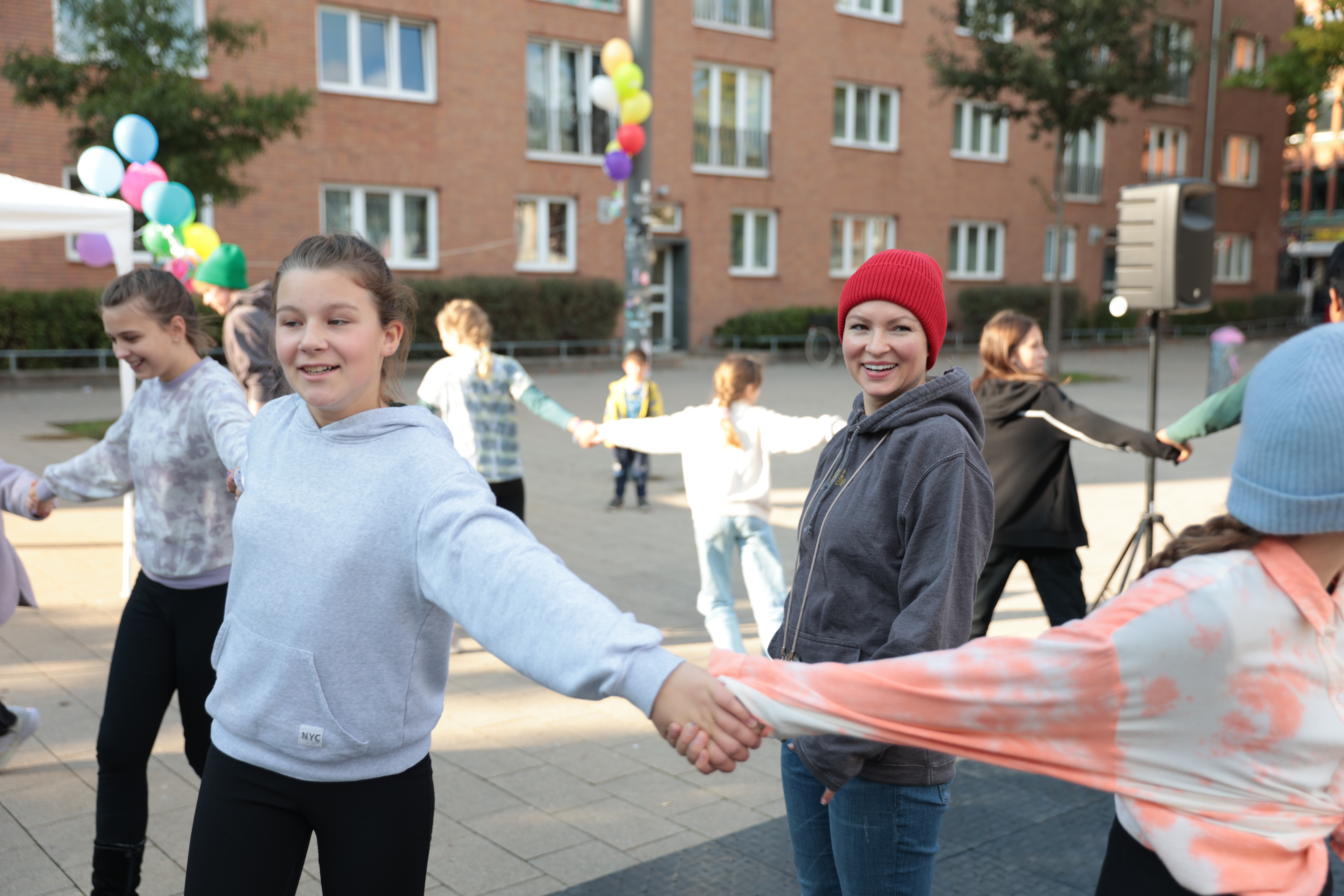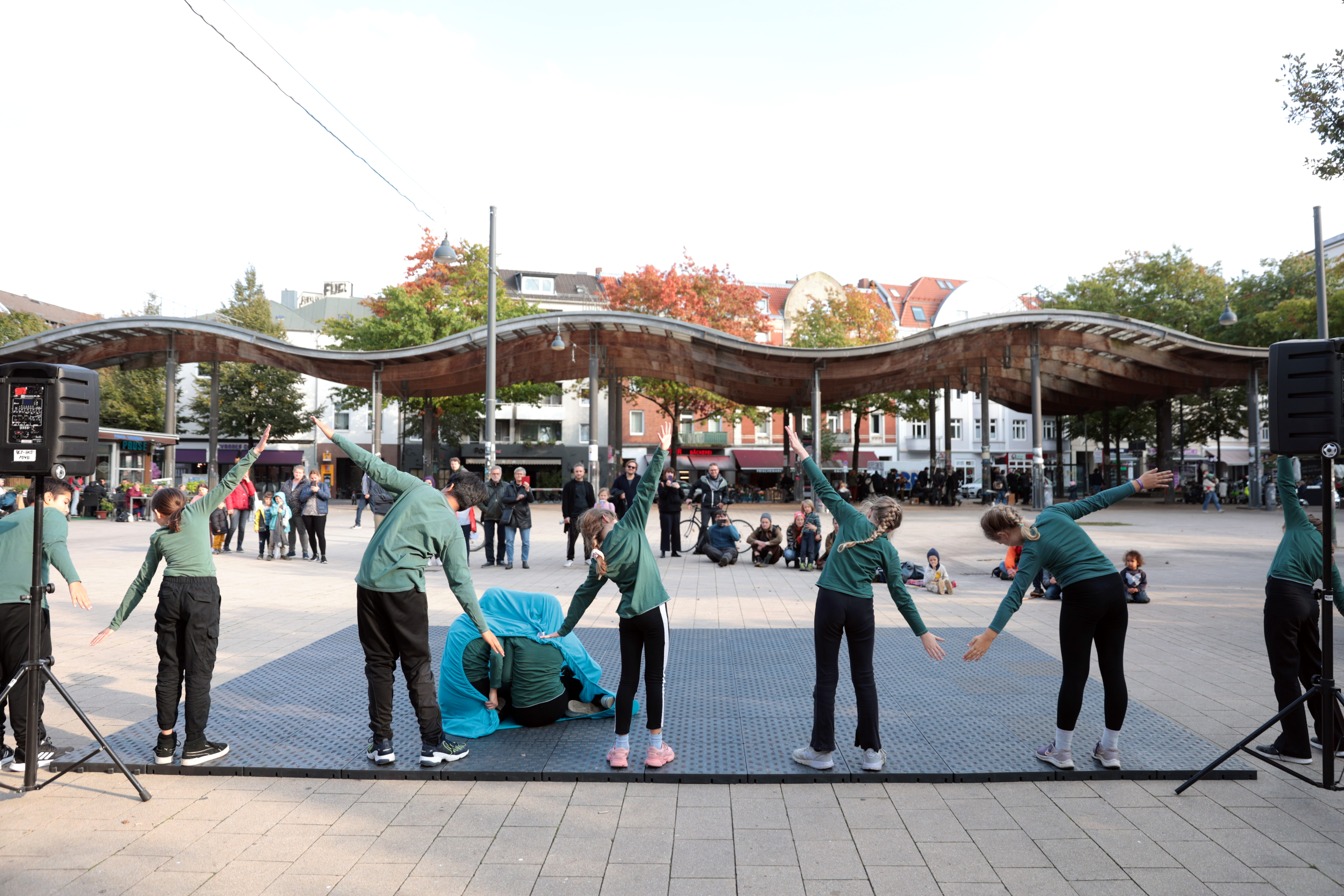 Am Freitag machte dafür nicht nur das Wetter mit, sondern auch alle Familien, Tanzbegeisterte und neugierige Passant*innen. Die Kinder und Jugendliche von LABOR#4 Outdoor starteten den Nachmittag mit einem kreativen Tanzauftritt, um alle Zuschauer*innen auf dem Stübenplatz anzulocken und die Freude an Bewegung zu zeigen.