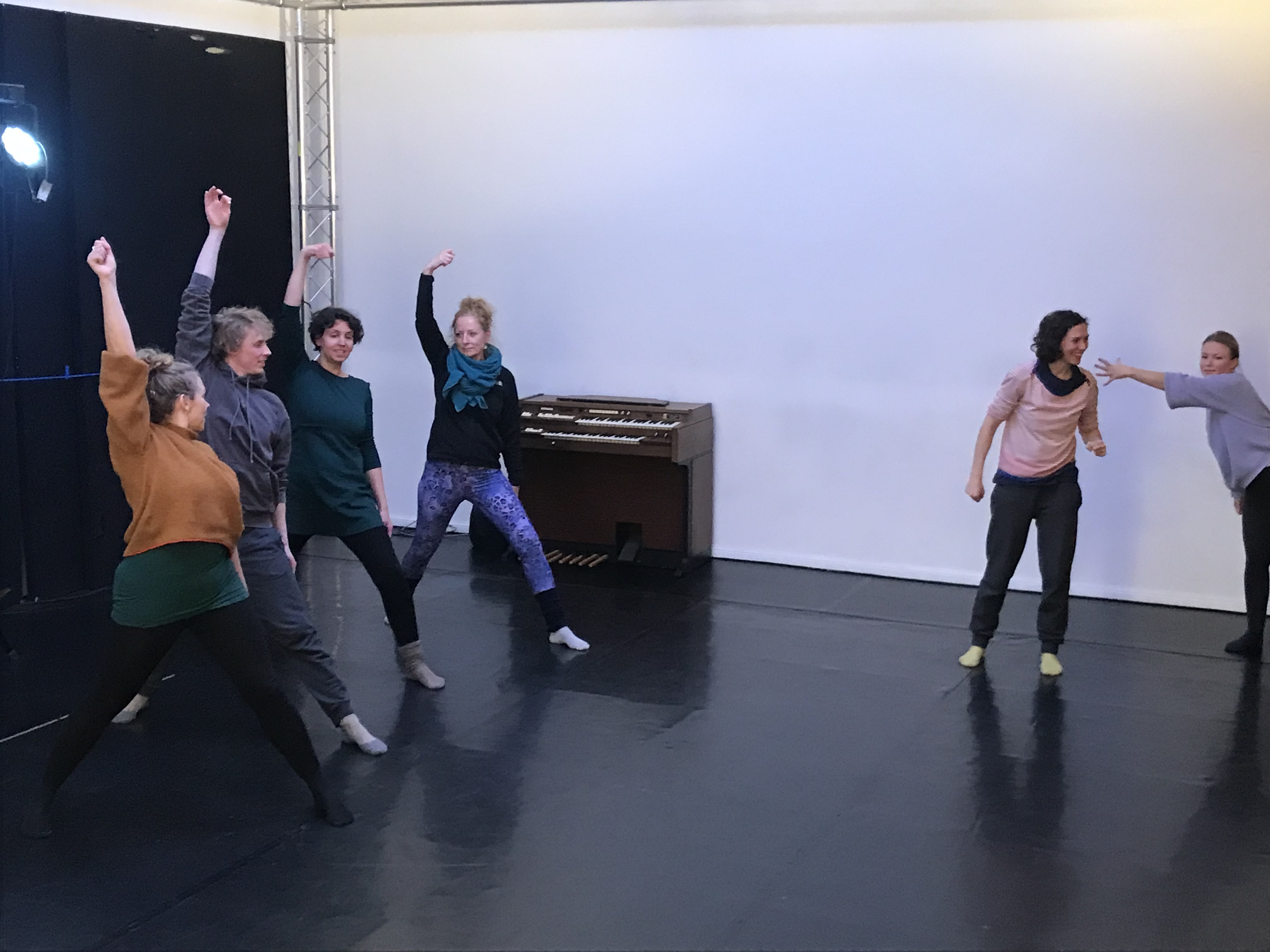 Das Team der Choreograf*innen stellt sich vor: Anastasia Schwarzkopf, Tyll Wibben, Pepita Carstens, Eva Bernhard, Meike Klapprodt und Philipp Wiesner.