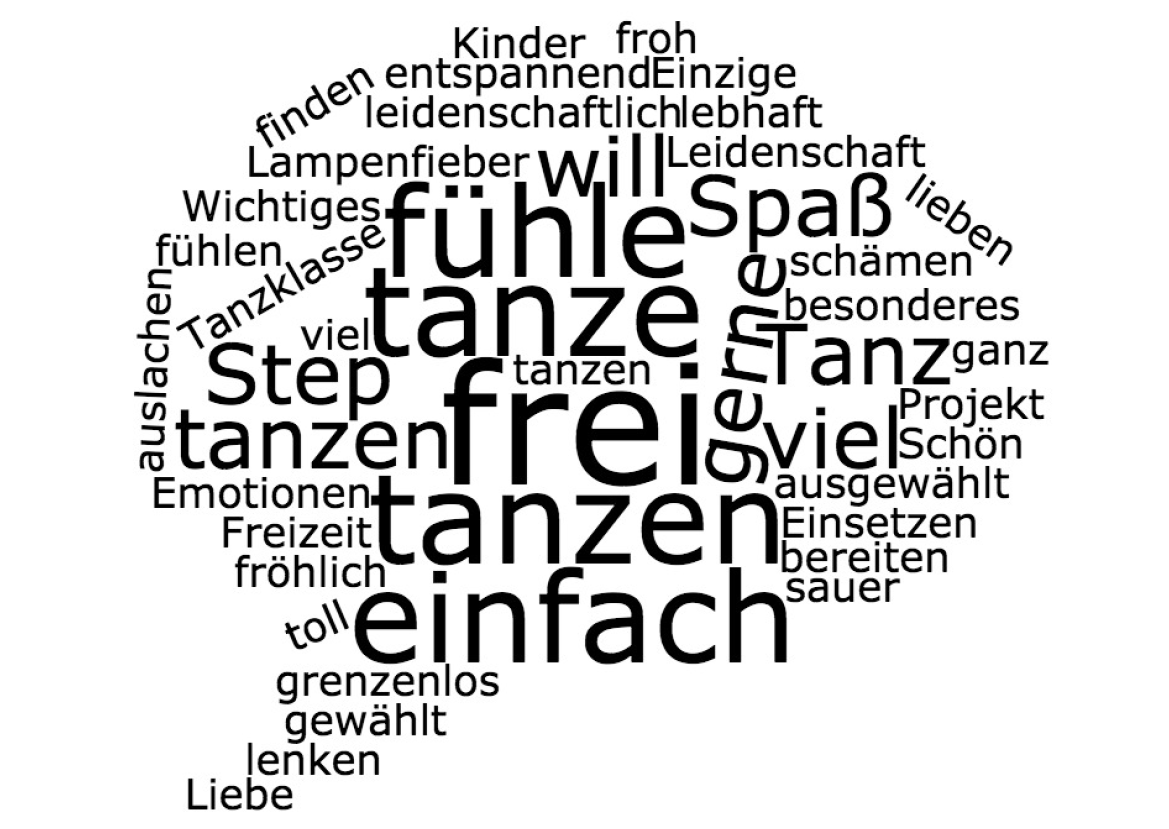 Vorab haben wir die Schüler*innen gefragt: »Was ist für dich Tanz?« Die Antworten sind hier in einer Wortwolke dargestellt.