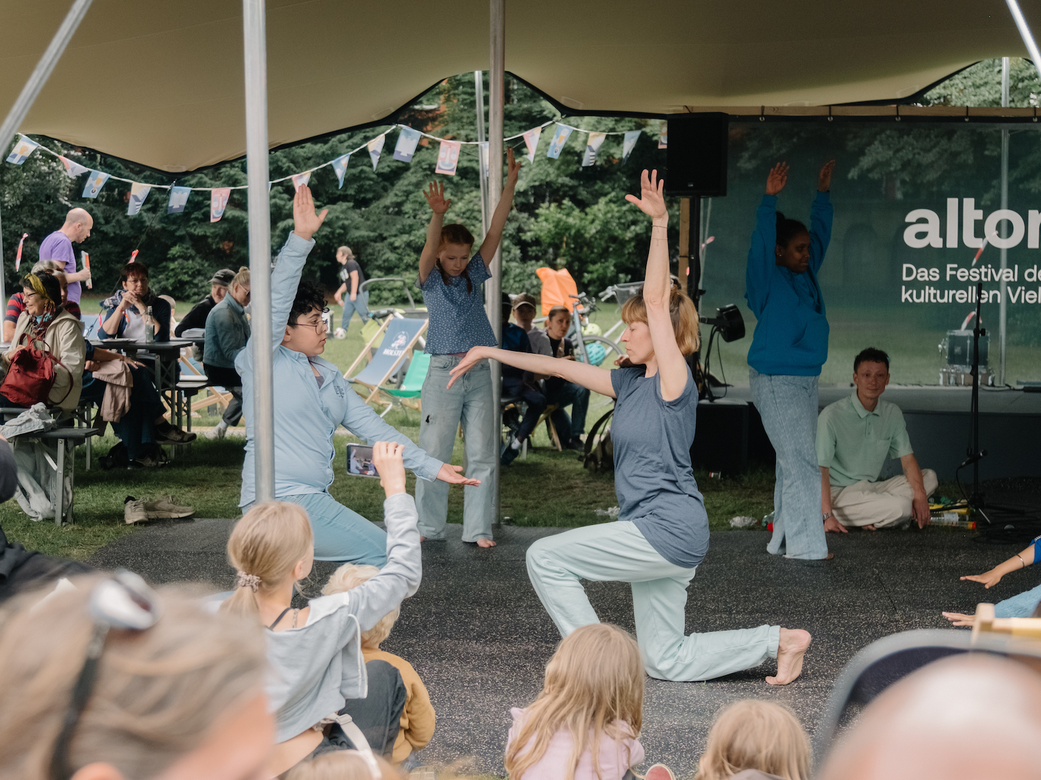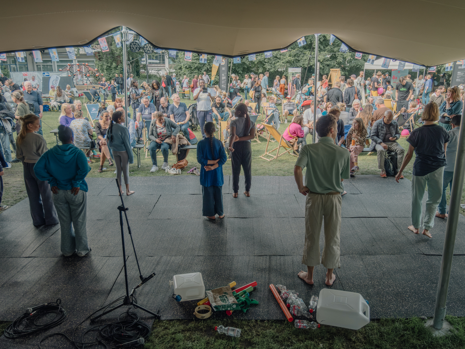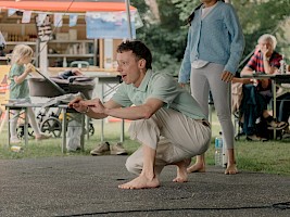 Inspiriert vom diesjährigen »Step by Step« Thema UMWELT untersuchten die Teilnehmer*innen das Verhältnis des Menschen zur Natur und befassten sich schließlich mit dem Element Wasser. Gemeinsam mit den Choreografinnen Anastasia Schwarzkopf und Pepita Carstens und dem Schauspieler Pavlo Kruzhnov präsentierten sie vor einem großen Publikum auf der Christianswiese (altonale) und im Ernst Deutsch Theater ein ganz besonderes Klangorchester, sich wandelnde Wasserkristalle und eine fließende Choreografie.